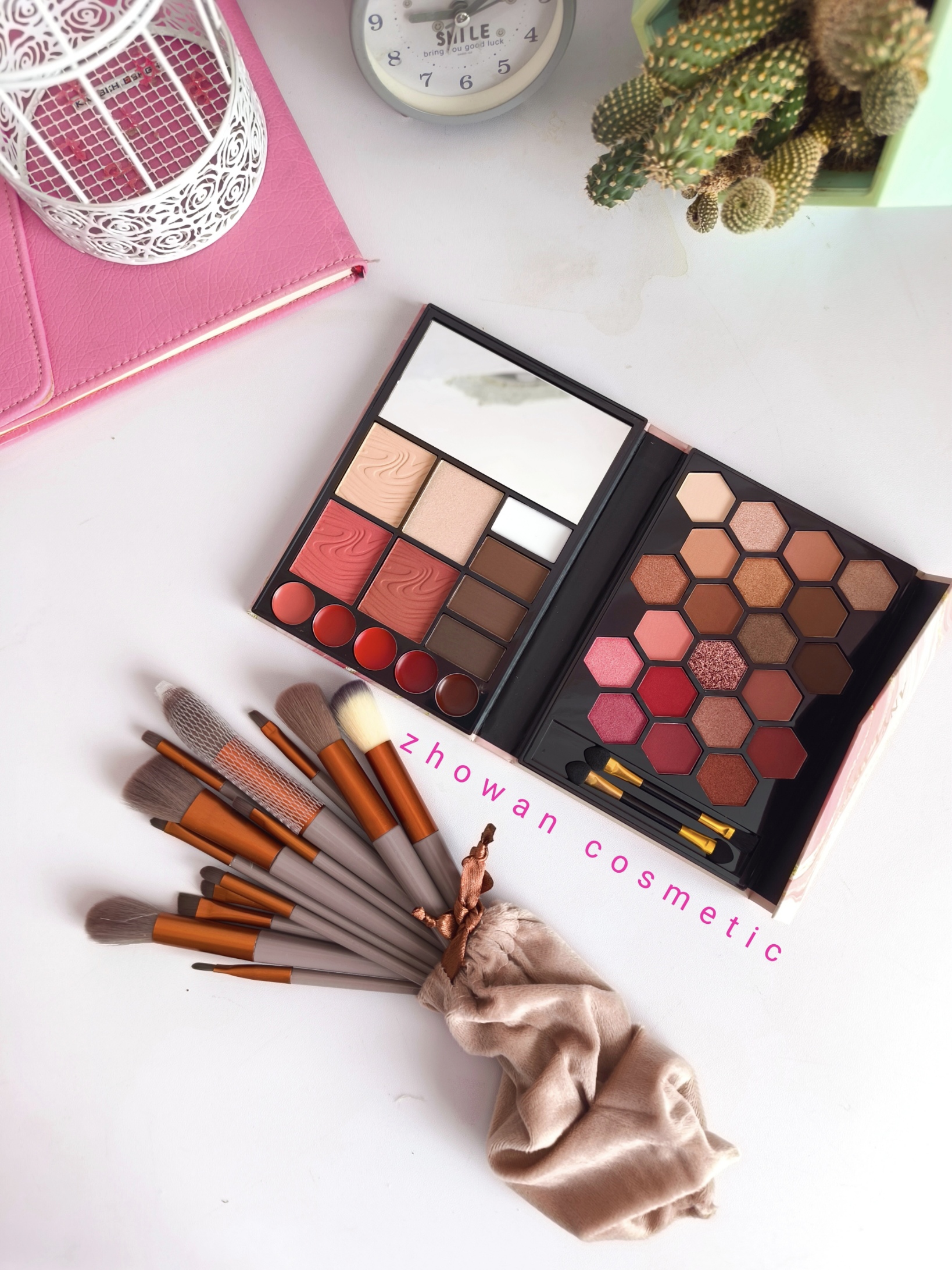 🩷پالت میکاپ ، 21 رنگ سایه، 5 تا رژلب ، 2 تا رژگونه، 2 تا هایلایتر، 4 تا کانتور و 2 عدد براش و 1 اینه، فقط 395 ت