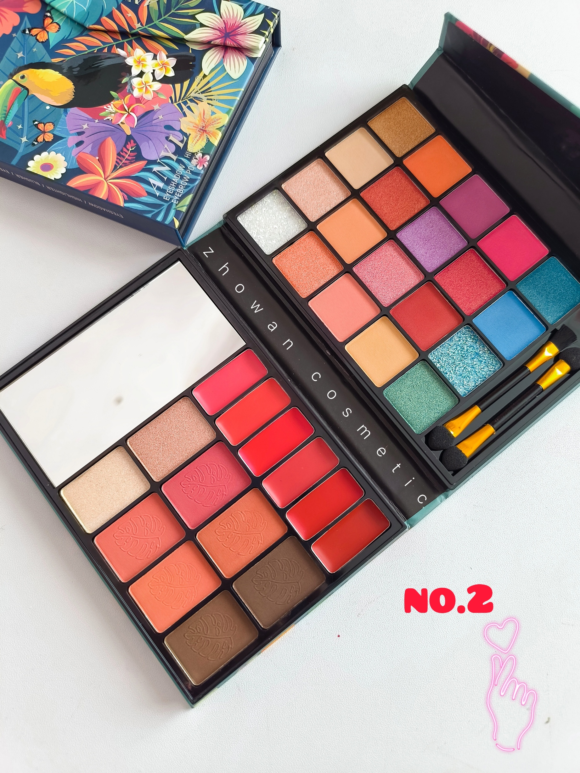 پالت میکاپ ، 20 رنگ سایه، 6 تا رژلب ، 4 تا رژگونه، 2 تا هایلایتر، 2 تا کانتور و 2 عدد براش و 1 اینه، فقط 395 ت